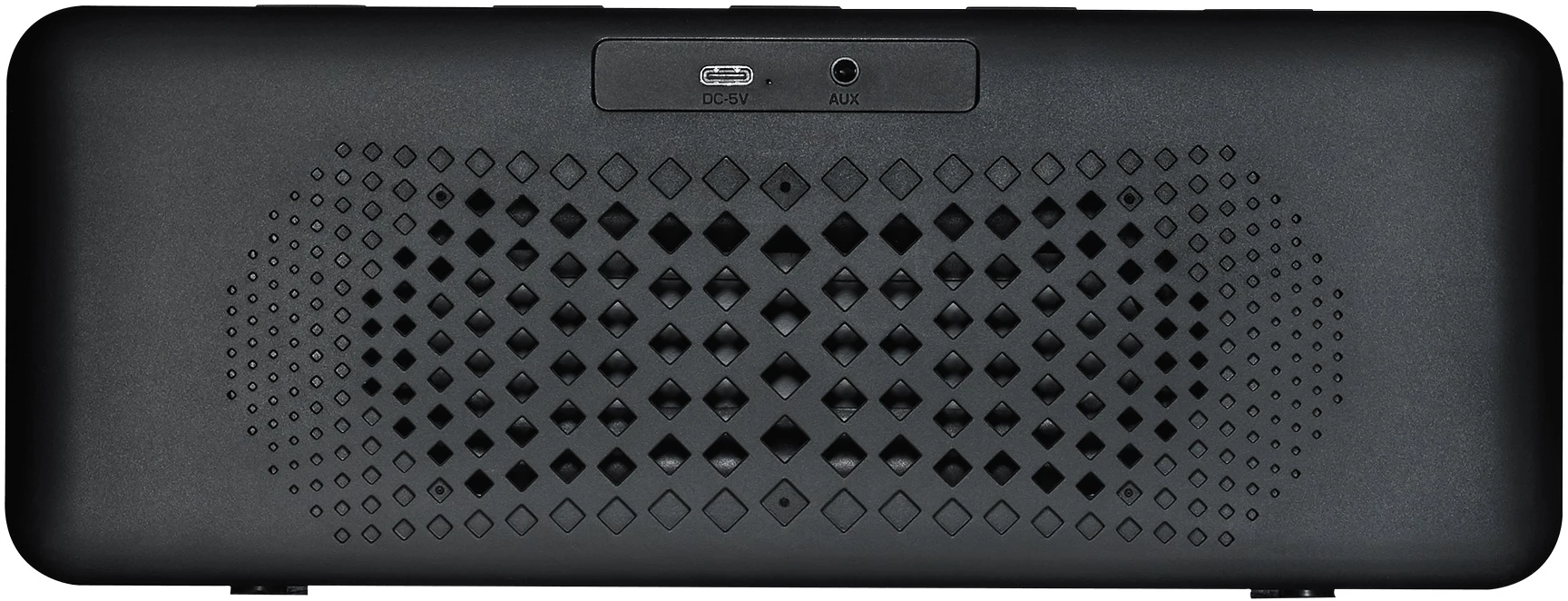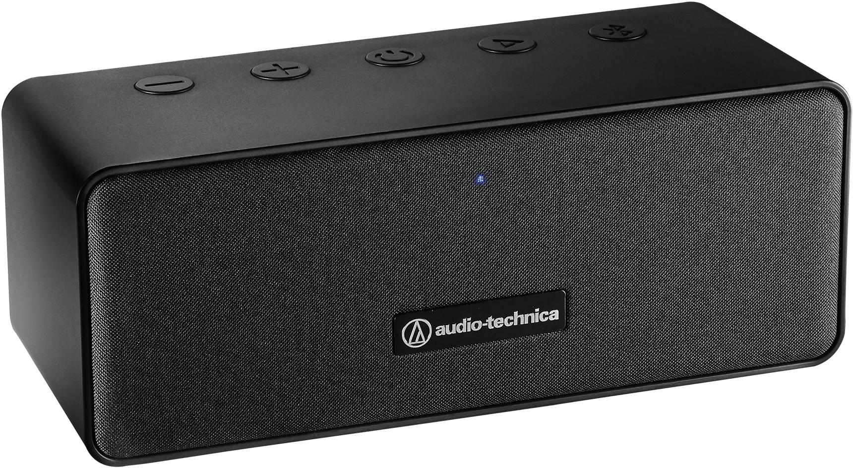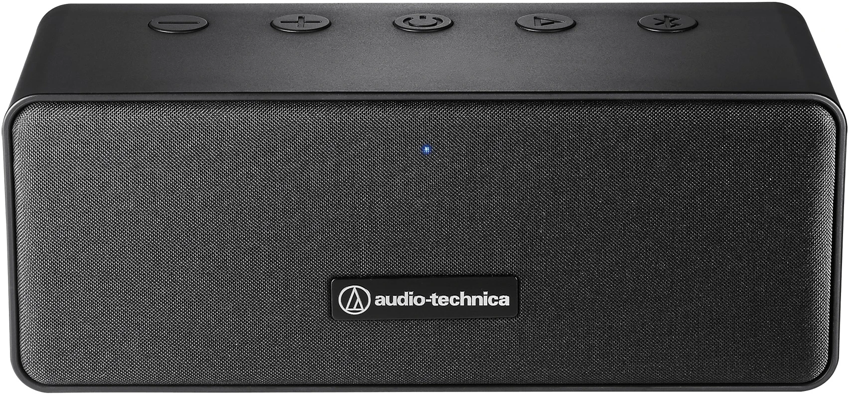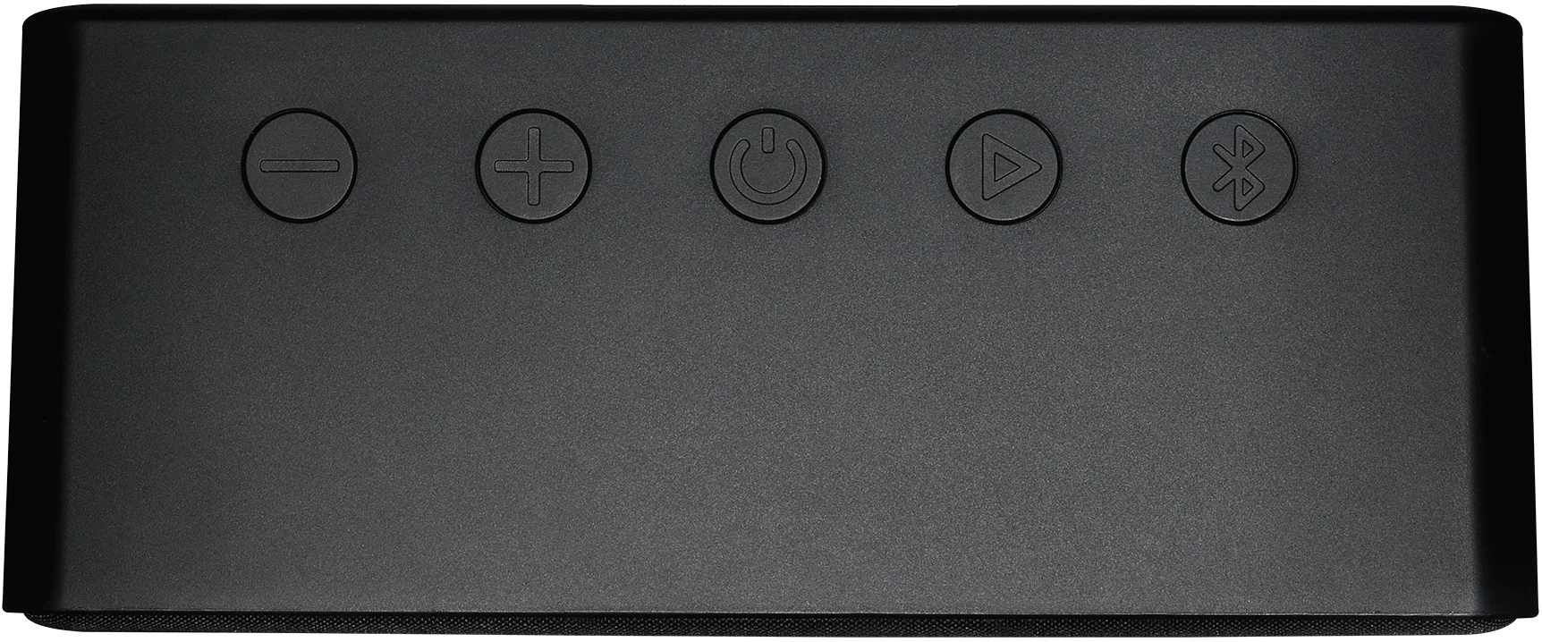 outfitted with an elegant fabric grille. Power, play/pause, volume and