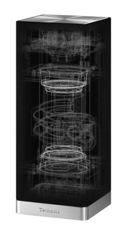 a single housing. Finished with real-wood veneer and a beautiful grille cloth,